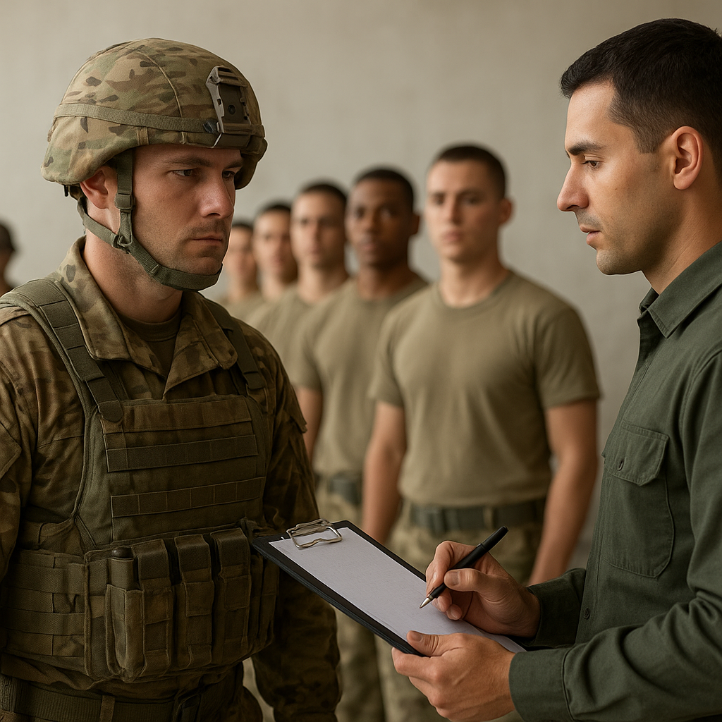 - Testy zdolności stresowych – symulacje ostrzału, wybuchów, nagłych alarmów.